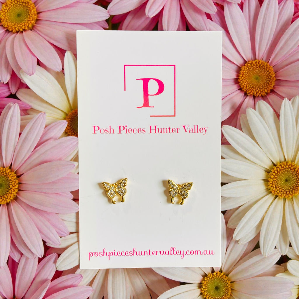 Butterfly gold sparkle studs