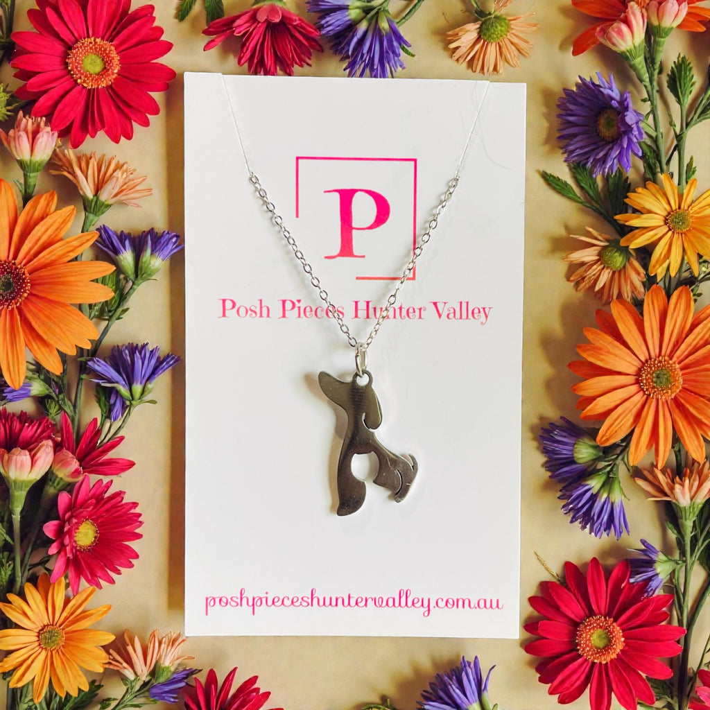 Dachshund sitting silver necklace